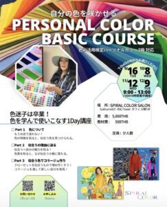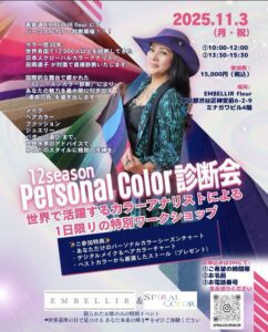 ✨ 迷わない、悩まない。あなたの魅力を引き出す「色」を手に入れませんか? 自分に似合う色を知ることは、ファッションやメイクの第一歩。 「PERSONAL COLOR BASIC COURSE」では、1日で“色の知識”を身 […]