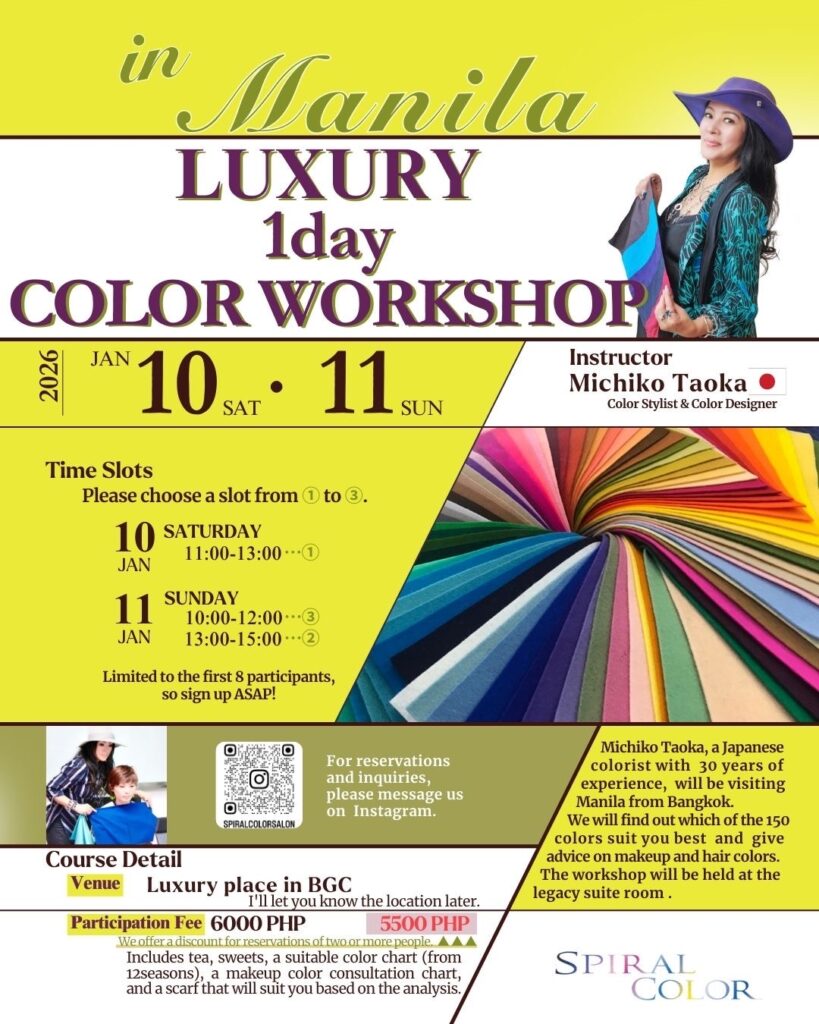 Japanese master colorist Michiko Taoka, with 30 years of professional experience and over 15,000 analyses worldwide, is coming back to Manila for two special events: