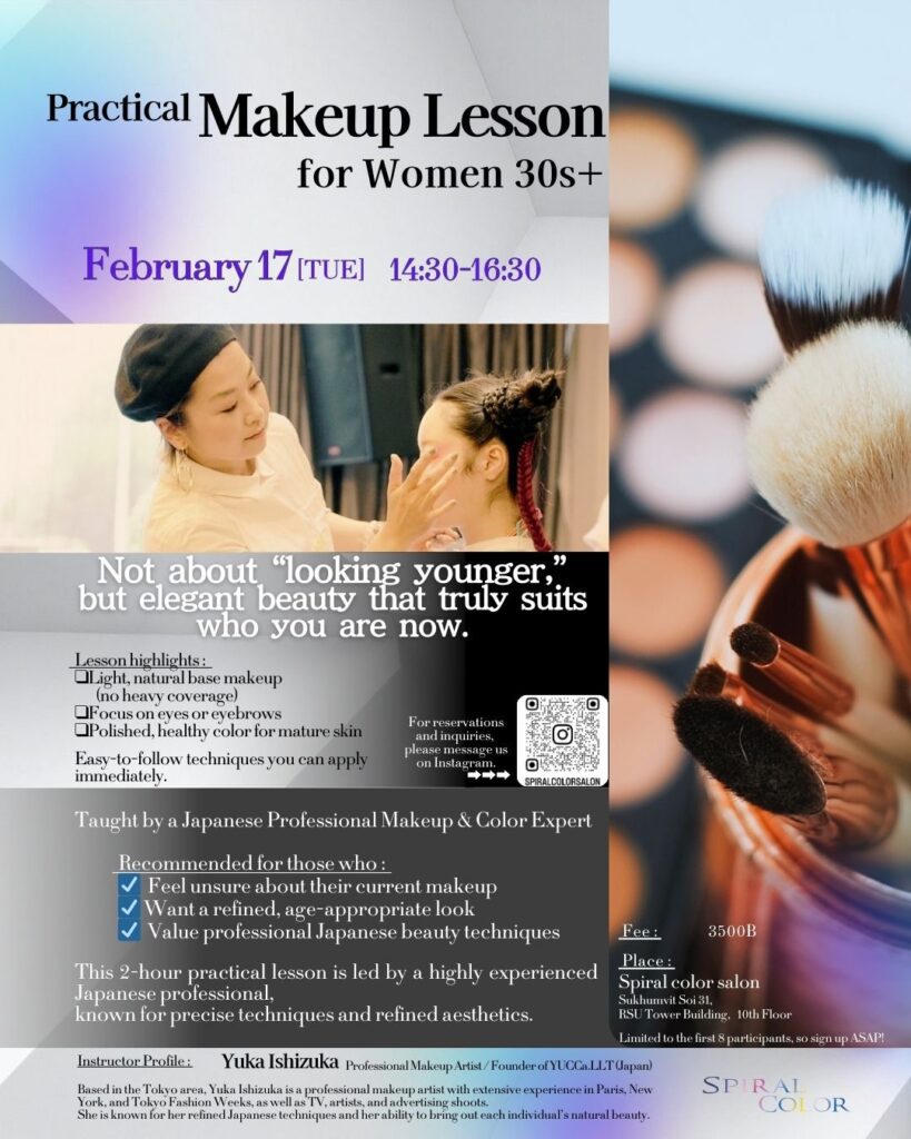 The instructor is a top professional makeup artist who has worked on Paris Fashion Week and international runways, visiting Bangkok especially from Tokyo for this exclusive session.